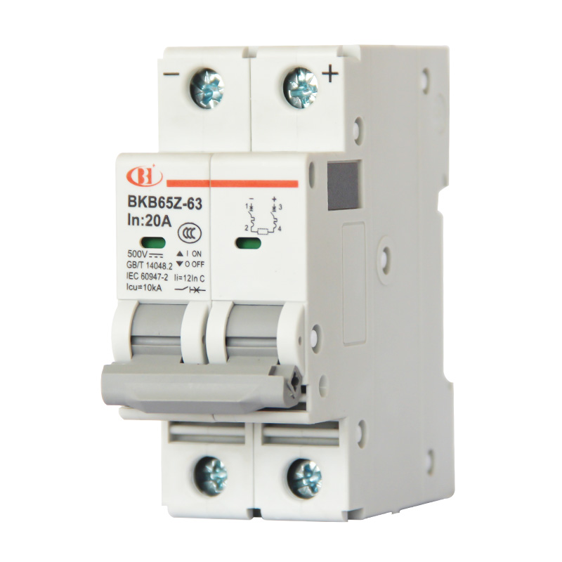 BKB65Z-63系列直流小型断路器适用于额定直流电压至1000V,额定电流1~63A,额定绝缘电压1000V的直流系统线路中。用来对建筑及类似场所的直流系统线路设施、电气设备进行过电流保护,也可以用于不频繁的通断操作。本产品符合GB/T 14048.2、IEC 60947-2标准。